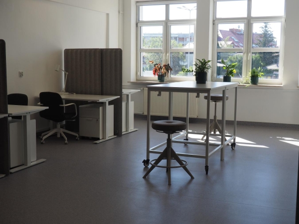 - 2 sale do coworkingu wyposażone w 24 biurka w systemie hot-desk;