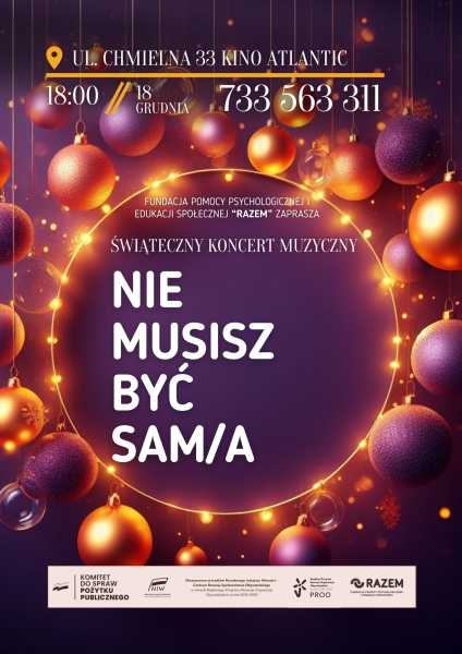 🎶 Zapraszamy na świąteczny koncert muzyczny "Nie musisz być sam"! 🎄