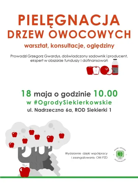 Ogrody Siekierkowskie (ROD Siekierki I, ROD Mechanizacja, ROD Siekierki II) serdecznie zapraszają na wykład na temat uprawy i chemicznej ochrony drzew owocowych (na przykładzie jabłoni i grusz), konsultacje oraz praktyczne oględziny drzew na wybranych działkach.