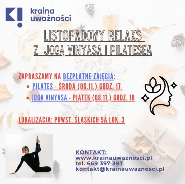 KRAINA UWAŻNOŚCI zaprasza na bezpłatne, pokazowe zajęcia jogi Vinyasa!