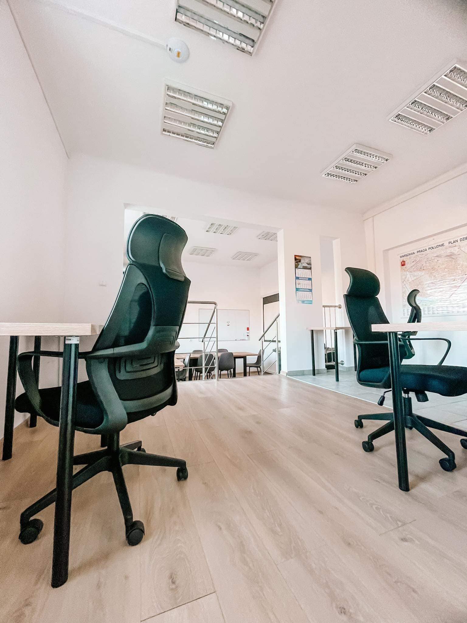 - 2 sale do coworkingu wyposażone w 24 biurka w systemie hot-desk;